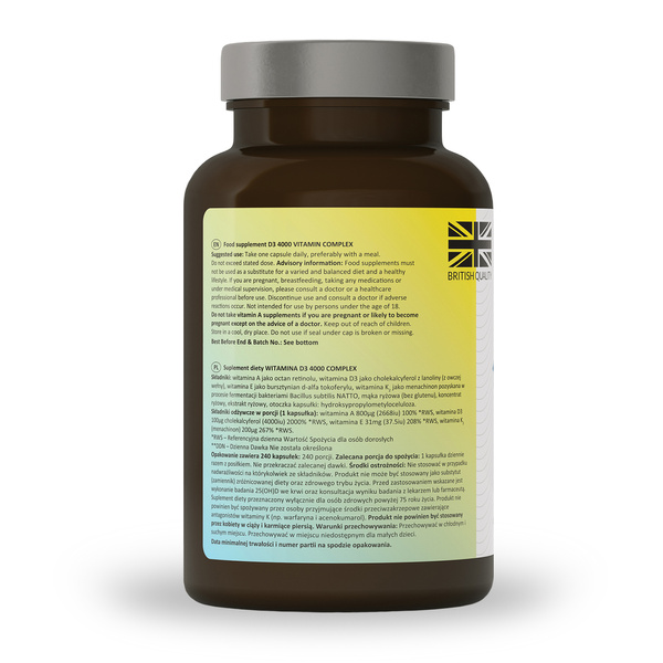 W naszym suplemencie znajduje się surowiec o certyfikatach czystości mikrobiologicznej oraz standaryzacji unijnej.  Jedyne substancje, jakie dodaliśmy do formulacji, to dwie witaminy – D i K.